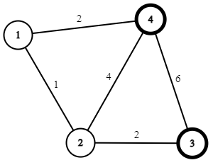 - \(K\) đỉnh đặc biệt, phân biệt có tính chất như sau: trên đường đi, khi ở một đỉnh đặc biệt có thể di chuyển đến một đỉnh đặc biết bất kỳ trước đó đã đi qua mà không mất chi phí.