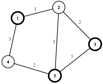 - Dòng đầu tiên gồm ba số nguyên dương \(N, M\) và \(K \ (2\le K\le N; \ N, M\le 10^5)\) mô tả số lượng đỉnh, số lượng cạnh và số lượng đỉnh đặc biệt;