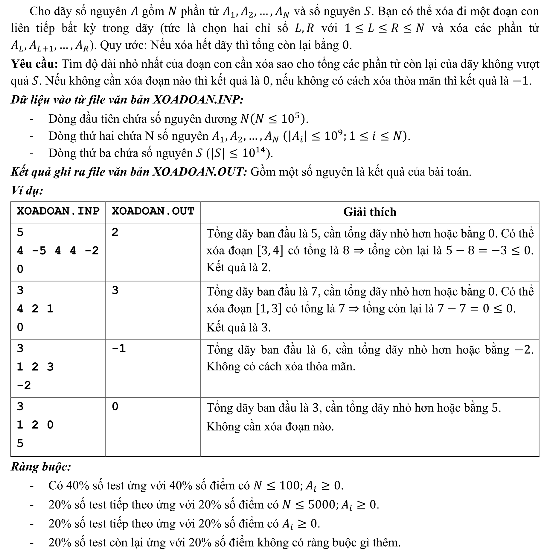 Điểm: 100 (p) Thời gian: 1.0s Bộ nhớ: 1G Input: XOADOAN.INP Output: XOADOAN.OUT