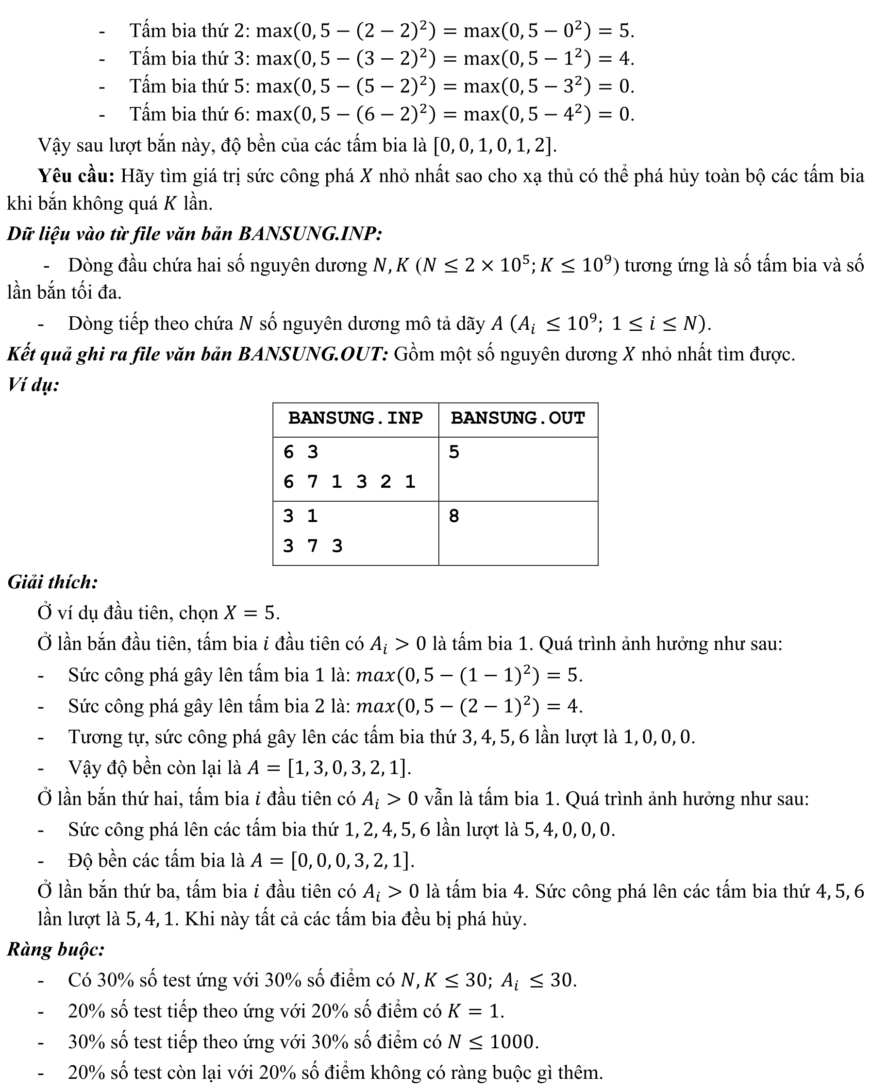 Điểm: 100 (p) Thời gian: 0.5s Bộ nhớ: 1G Input: BANSUNG.INP Output: BANSUNG.OUT